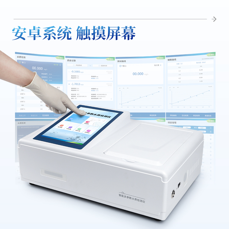 本仪器主要检测水中硫酸盐含量指标,兼具智能数据分析功能,图表、列表显示数据,分析一目了然;高清晰度彩色液晶触摸显示屏,Android智能操作系统,中文显示界面,中英文键盘,人性化操作,使用更简单。